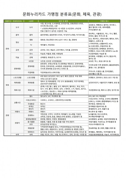 가맹 대상은 문화, 체육, 관광에 해당하는 업종으로 문화체험·공예·음악·체육용품·체육시설, 캠핑장·테마파크·숙박 등이다.