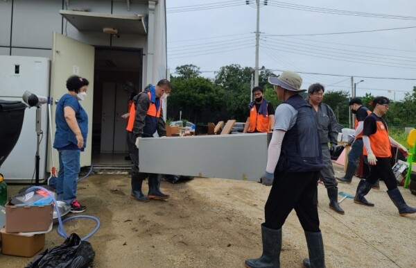 이에 자원봉사자들은 건물 가득 덮은 토사를 밖으로 쓸어내고 흙탕물에 젖은 어르신들의 물품과 가구를 깨끗이 씻어 햇볕에 말리는데 구슬땀을 흘렸으며 물기가 마른 가구와 집기류는 다시 건물 안으로 들이며 정상화에 힘을 모았다.