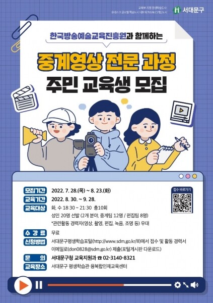 이번 과정은 한국방송예술교육진흥원이 보유한 방송 영상용 중계촬영 장비와 서대문구평생학습관·융복합인재교육센터의 시설을 활용해 진행된다.
