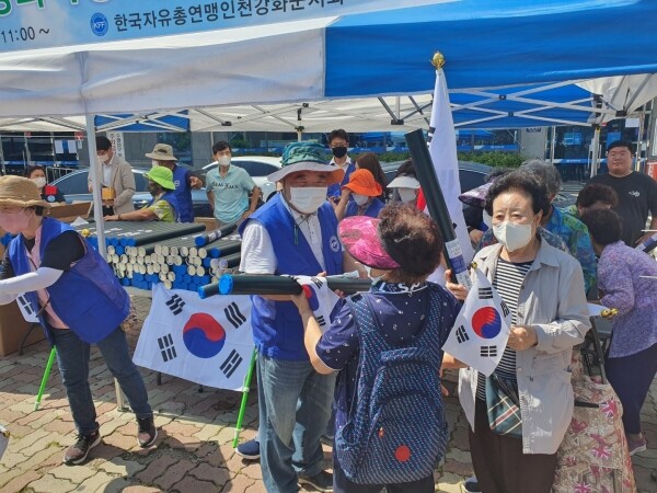 이날 회원들은 1,000여 개의 태극기 무료 나눔과 태극기 달기운동 캠페인을 함께 진행해 시민들로부터 큰 호응을 얻었다.