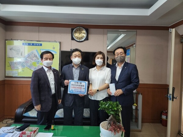 ? 수택1동 홍호섭 동장은 “수택1동 주민에게 사랑 나눔을 실천해 준 구리새마을금고에 깊은 감사의 말씀을 전하며 후원금은 관내 지원이 꼭 필요한 가정에 소중히 전달하겠다”고 화답했다.