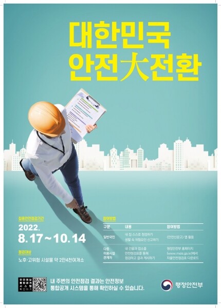 또한, 이천시는 시민 참여와 관심 증대를 위해 안전점검의 날 행사와 병행해 안전신문고 홍보 및 가정 또는 다중이용업소에서 사용이 가능한 자율안전점검표를 배부를 통한 자율안전점검을 유도해 자율적 신고·점검문화 확산을 기대하고 있다.