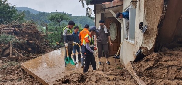 이날 자원봉사에 나선 대원 15명은 주택 안으로 밀려 들어온 토사 제거와 바닥 청소, 침수된 가구와 더럽혀진 생활용품 등을 청소했다.