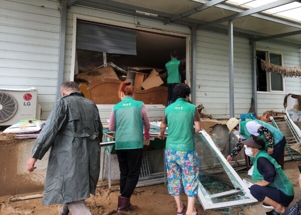 이날 새마을회 회원 20여명은 집중호우로 침수피해를 받은 가정을 방문해 토사 제거와 배수로 물빼기 작업, 침수된 가구와 생활용품 청소, 집 주변 방역 활동을 추진했다.