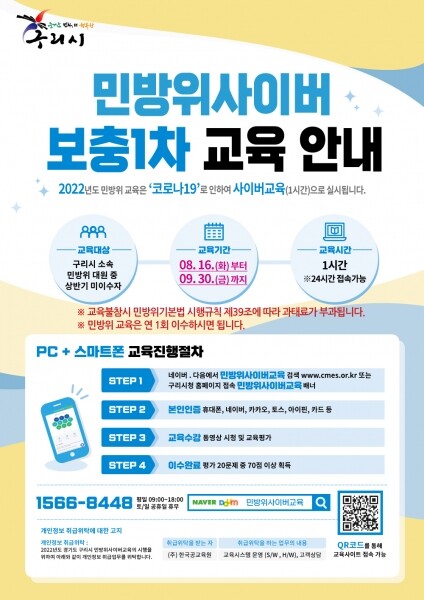 백경현 시장은 “민방위 교육을 이수하지 않으면 과태료 부과가 될 수 있으니, 반드시 해당 기간내에 교육을 받으시길 바란다“고 말했다.
