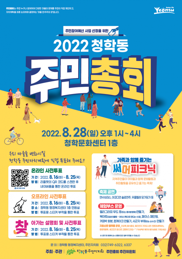 권영숙 청학동장은 “무더위 등의 어려운 여건 속에서도 주민총회 준비를 위해 구슬땀을 쏟으신 주민자치회 위원님들께 감사하다”며 “주민 화합의 장인 주민총회가 성공적으로 개최되도록 힘껏 지원하겠다”고 전했다.