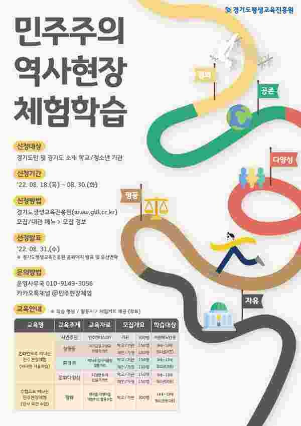 경기도평생교육진흥원 관계자는 “성숙한 시민의식을 형성하는데 필요한 역량을 기를 수 있는 좋은 기회가 될 것”이라며 “도민들의 적극적인 참여를 부탁한다”고 말했다.
