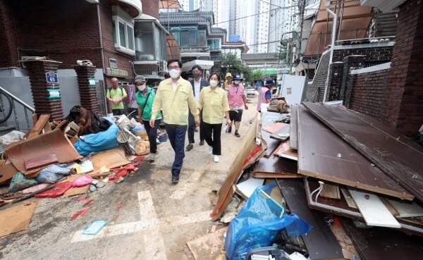 이외에도 행정안전부, 서울시 등 관계공무원들이 수해 복구에 일손을 보탰다.