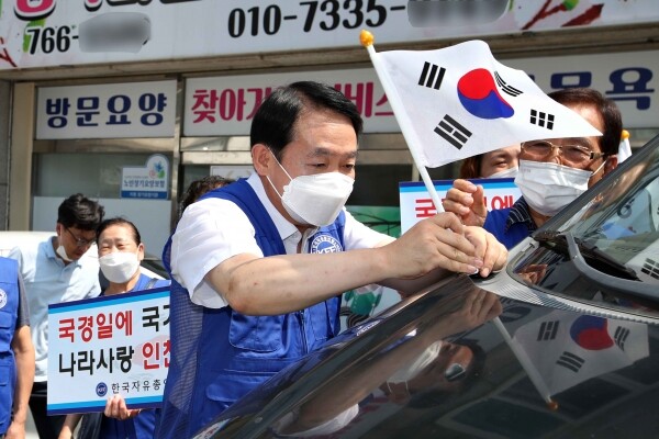 동구지회는 주민들이 자발적으로 광복절을 기념해 태극기 게양하는 참여 분위기를 조성하고 민주 시민의식을 고양하고자 이번 행사를 마련했다.