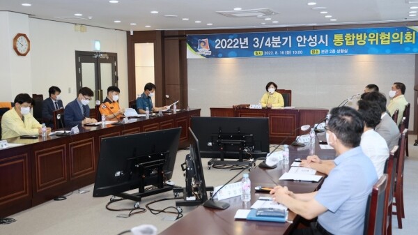 김보라 시장 주재로 열린 이번 협의회는 오는 22일부터 25일까지 실시될 ‘2022년 을지연습’에 대비한 위기 대응 연습의 일환으로 마련됐으며 안정열 안성시의회 의장, 장한주 안성경찰서장, 김범진 안성소방서장, 육군 제5171부대 2대대장, 재향군인회장, 농협중앙회 안성시지부장 등 협의회 위원 총 14명이 참석했다.