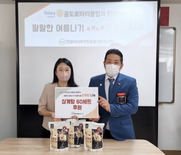 박동훈 공도로타리클럽회장은 “더운 날씨로 지치기 쉬운 때이지만 우리 이웃들이 삼계탕을 드시고 건강한 여름을 나시길 바란다”고 말했다.