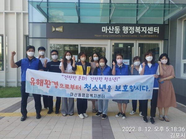 이번 캠페인은 여름 휴가철에 마산동 학교주변, 번화가 등에 대한 점검 및 단속활동을 실시했다으로써 유해환경개선 및 청소년 보호의식 확산 등 건전한 사회분위기 조성을 유도하기 위해 마산동 학교 주변, 일반음식점, 편의점 등 24개소를 방문해 ‘청소년 유해환경 NO, 청소년 보호 YES’ 리플릿을 배부하고 ‘19세 미만 청소년에게 술·판매 금지 표시’ 미부착 업소에는 스티커를 직접 부착하며 음식점에서 술·담배를 청소년들에게 판매 금지하도록 계도하는 등 청소년 보호를 위한 적극적인 홍보 활동을 했다.