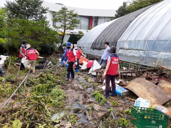 지난 13일에는 동천동에서 침수된 주택 앞에 쌓인 토사물을 걷어내고 폐기물을 치우는 작업도 진행했다.