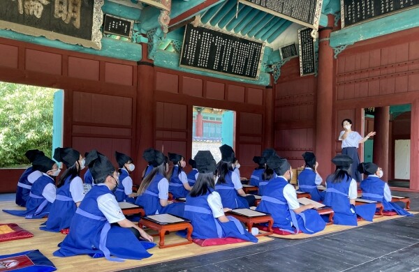 성균관 대성전, 명륜당 등 장소의 의미와 예절을 배웠으며 특히 명륜당은 우리에게 익숙한 천원짜리 지폐 앞면에 있는 조선시대 퇴계 이황이 학문과 예를 익히던 장소로 단원들의 흥미를 이끌기도 했다.
