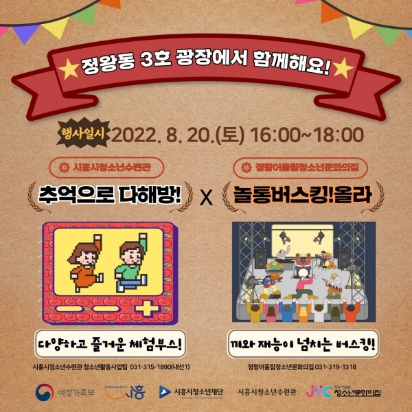 이번 4회 차 어울림마당은 ‘찾아가는 어울림마당’으로 정왕어울림청소년문화의집 ‘놀통버스킹 올라’와 시흥시청소년수련관의 ‘추억으로 다해방’이 함께 추진돼 한층 풍성한 청소년축제를 선보일 것으로 기대된다.
