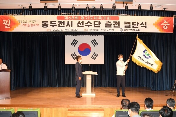 이날 결단식에는 정순욱 동두천시부시장, 김승호 동두천시의회의장, 박용선 동두천시체육회장을 비롯한 주요 내빈 및 출전선수·임원 등 150여명이 참석했다.