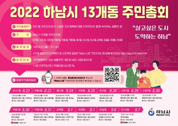 한편 동별 주민총회 투표 일정 및 안건은 하남시 홈페이지나 ‘하남e스스로’ 주민자치회 게시판에서 확인 가능하다.