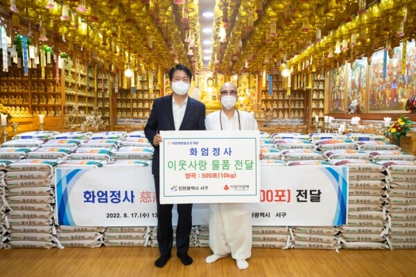 강범석 서구청장은 “부처님의 자비로운 마음처럼 항상 이웃을 위한 지원에 감사드린다”며 “전달받은 양곡은 도움이 필요한 이웃에게 잘 전달하겠다”고 답했다.