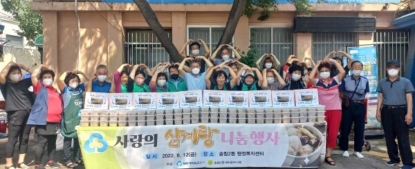 이날 실시된 “사랑愛 삼계탕 나눔” 행사는 송림2동 새마을금고의 후원으로 마련됐으며 무더운 날씨에 적적하게 지내시는 마을 어르신들과 저소득층 200명에게 사랑을 담은 삼계탕을 전달해 여름철 더위를 건강하게 이겨낼 수 있도록 돕고자 마련됐다.