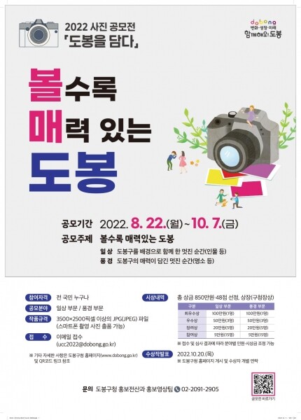 오언석 도봉구청장은 “볼수록 매력있는 도봉의 삶과 정서를 담은 뛰어난 작품들이 출품되길 기대하겠다”고 전했다.