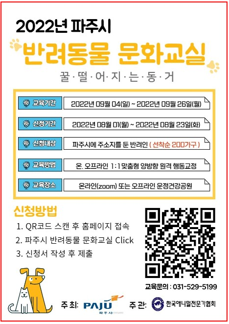 파주시, 9월 4일부터 반려동물 문화교실 프로그램 시행