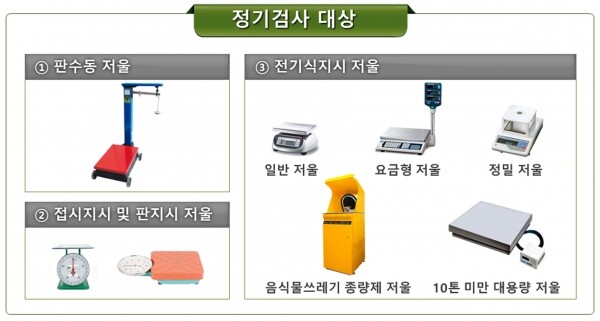 검사 대상은 형식승인을 받은 10t 미만의 상거래용 비자동 저울이다.