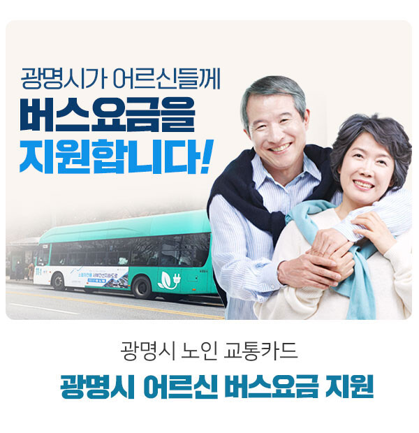어르신 대중교통비 지원 사업은 광명시에 주민등록을 둔 만 65세 이상 모든 어르신을 대상으로 대중교통비를 지원한다.