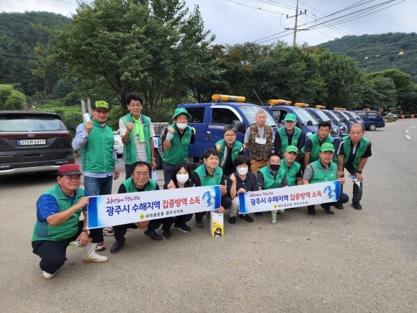 지난 17일은 ‘새마을지회 집중 방역의 날’로 지정해 침수 및 토사 유출로 피해가 큰 남한산성면과 퇴촌면 일대 집중 방역을 실시하고 쓰레기 처리 등 복구 작업에 적극 참여해 침수 피해를 입은 시민들의 일상 복귀를 도왔다.