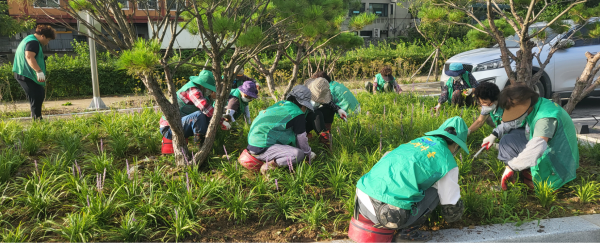 박웅 협의회장과 김양금 부녀회장은 “집중호우로 인해 늦어진 제초작업과 동산 가꾸기를 날이 개는 대로 할 수 있어서 다행이다”며 “수해 피해로 힘든 와중에 주민들이 쾌적하게 생활할 수 있도록 적극적으로 참여해 준 회원분들께 감사드린다”고 말했다.