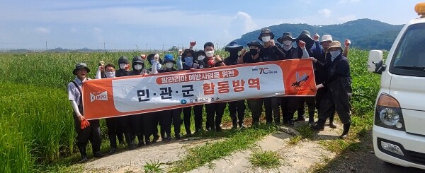 이번 합동방역은 말라리아 예방 및 조기 퇴치를 위한 것으로 보건소 방제반,민간소독업체, 육군17사단이 함께 참여해 월곶면 접경지역 말라리아 매개모기 서식지를 대상으로 방역소독을 실시했으며 9월까지 휴경지와 나대지 등 취약지역 대상 매개모기 집중방제를 실시할 예정이다.