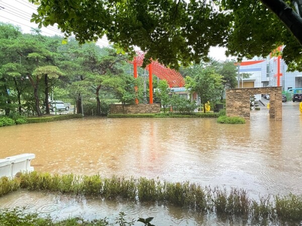 갑자기 쏟아진 집중호우로 공공하수처리시설 인근 산의 우수배수로가 막히면서 도로로 다량의 우수 및 토사가 유입됐으며 유입된 토사는 도로변 우수배수로를 막고 하수처리장 안으로 일시에 다량의 물이 유입돼 순식간에 무릎 위 높이까지 물이 차올랐다.