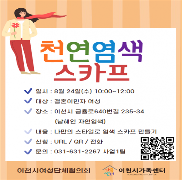 프로그램은 24일 10시부터 오전 시간 동안 진행되며 이천시 율면 석산리 부래미 마을에 위치한 ‘남혜인 자연염색 피어랑’에서 진행될 계획이라고 전했다.