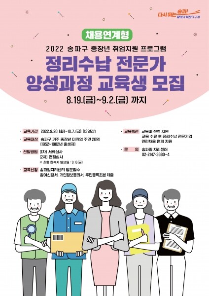 자세한 사항은 송파일자리센터로 문의하거나 송파구청 홈페이지 공지사항에서 확인 가능하다.