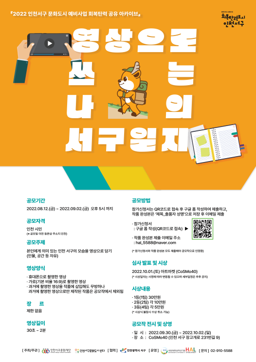 공모작은 코스모40에 전시될 예정이며 향후 ‘회복탄력 문화도시 서구 아카이빙’에 활용된다.