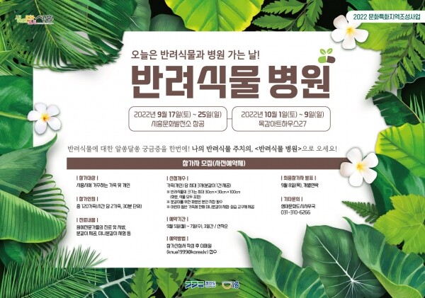또한, 평소 근로자와 인근주민을 위한 복합문화공간으로 활용된 시흥문화발전소 창공과 목감아트하우스27이 ‘반려식물 병원’으로 재미있게 탈바꿈한다.