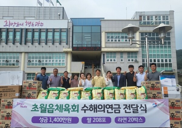 이에 따라 초월읍체육회는 쌀과 라면 등 2천만원 상당의 구호 물품을 수해민에게 전달할 계획이라고 전했다.