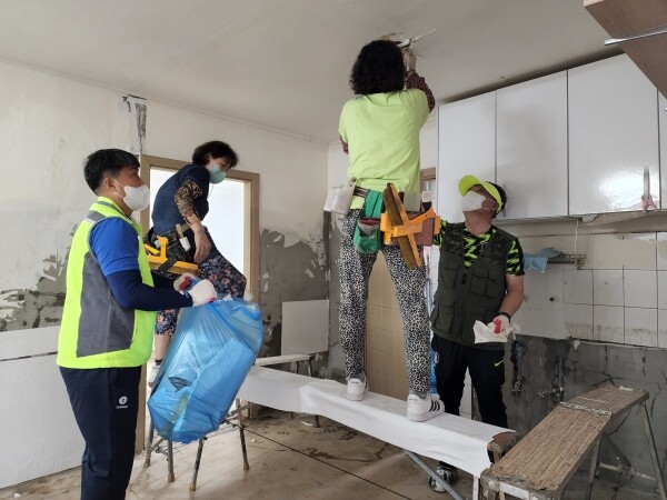 여기에 17일부터는 화성시자원봉사센터와 손을 잡고 피해 정도가 크고 이재민이 발생한 32가구의 집수리를 지원 중이다.