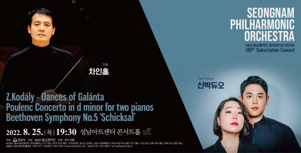 세련되고 서정적 연주가 빛나는 바이올리니스트이며 휠체어의 지휘자로 알려져있는 차인홍의 지휘로 진행되는 이번 공연은 코다이 갈란타의 춤과 뿔랑의 피아노 2대와 오케스트라를 위한 협주곡 그리고 베토벤의 교향곡 제5번을 무대에 올린다.