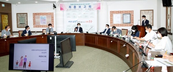 이날 최종보고회에서는 김정헌 중구청장을 비롯한 관계 공무원과 중구의회 강후공 의장을 비롯한 여러 의원이 참석했으며 동화마을 상가번영회 및 거주민 참석 하에, 송월동 동화마을의 활성화 방안 수립에 대한 그간 연구용역의 결과와 앞으로의 실행 방향에 대해 논의했다.