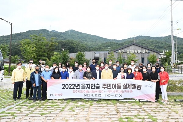 시는 양주 모처에서 45인승 버스를 통해 정해진 이동로로 주민이동을 진행했으며 지역 주민의 참여를 바탕으로 양주경찰서 5군단 등 유관기관 협조하에 최종집결지까지 성공적으로 도착했다.