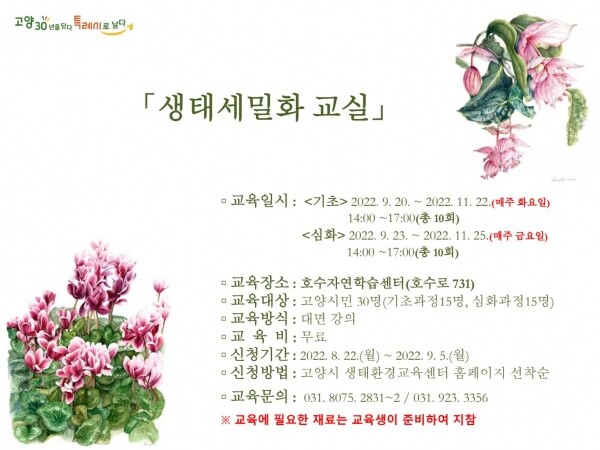 교육 신청은 8월 22일부터 9월 5일까지 고양시 생태환경교육센터 홈페이지에서 할 수 있다.