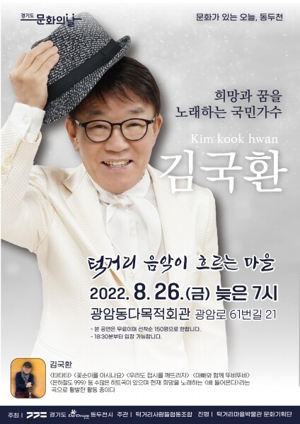 문화로 마을을 변화하려는 동두천 턱거리 마을의 노력에 공감하며 김국환의 공연이 성사됐으며 한 시간여 동안 자신의 히트곡을 총망라해 들려줄 예정이다.