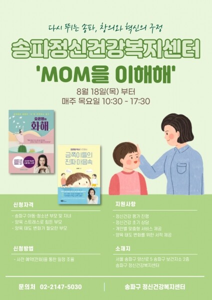 ‘MOM을 이해해’는 아동·청소년을 양육 중인 부모 및 자녀를 대상으로 8월 18일부터 매주 목요일마다 진행되고 있다.