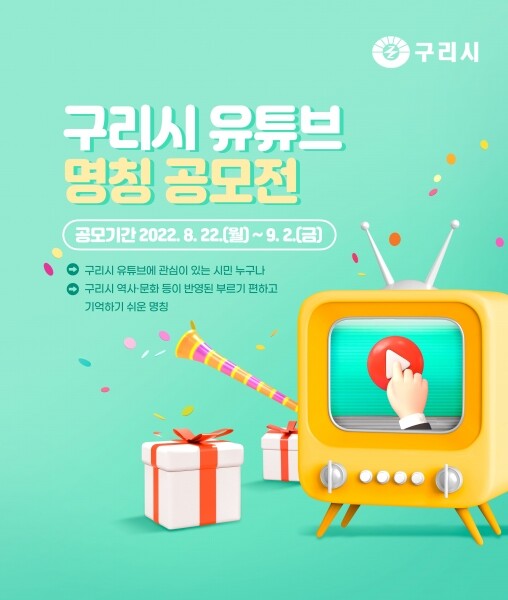 이번 공모는 구리시 유튜브에 관심이 있는 시민 누구나 참여할 수 있으며 공모 주제는 ‘구리시 역사와 문화 등이 반영된 부르기 쉽고 기억하기 편한 이름’이다.