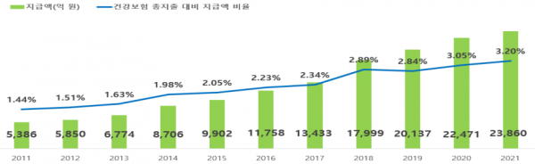 코로나19 장기화에 따른 경증·외래 의료이용 감소 등 영향으로 상한제 지급액 증가율은 전년보다는 다소 둔화됐다.