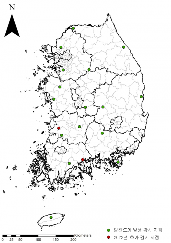 ▲ 2022년 털진드기 발생 감시지점