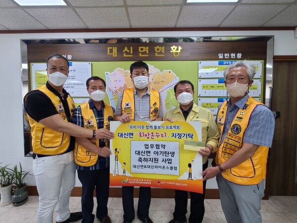 이번 협약은 대신면에 출산가정에 경제적 부담을 경감하고 출생의 기쁨을 지역사회주민과 함께 나눠 출산을 장려 분위기 조성하고 출생신고시 대신라이온스클럽에서 10만원상당 농협상품권을 직접 지원하는 협약을 맺은 가운데 대신면 보석같이 소중한 아기 탄생을 축하하는데 큰 의의가 있다.