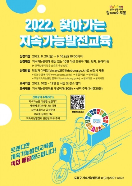 오언석 도봉구청장은 “도봉구가 선도적으로 시행하고 있는 지속가능발전에 대한 공감대가 이번 교육을 통해 구민에게까지 확산될 수 있길 기대한다”고 말했다.