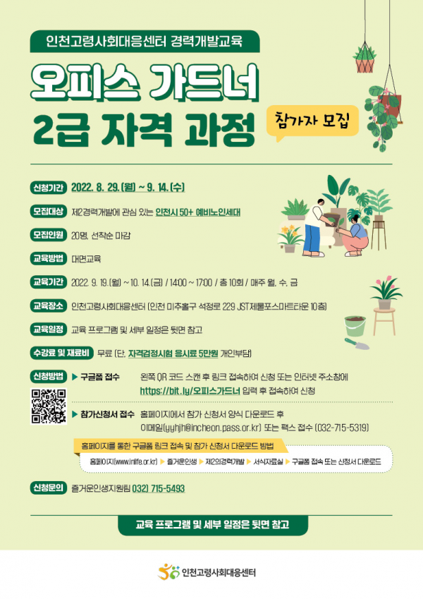 이번 교육은 인천지역 50세 이상 예비노인세대가 대상이며 오는 29일~다음 달 14일 참가자를 모집한다.