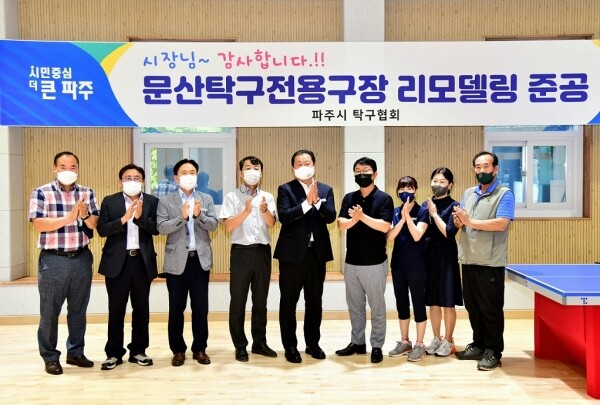 문산탁구전용구장 개보수 사업은 노후 체육시설 개선을 위해 2022년 공공체육시설 개보수 국민체육기금 지원사업 공모에 선정된 사업이다 시는 지난 5월부터 총사업비 6억을 들여 기존 노후된 탁구장 내·외부 전면 보수 및 노후 설비 등을 교체했으며 이용자 편의를 위한 주차장 재포장 공사 등을 완료했다.